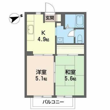 | 間取り | 2K(K4.9帖 和室5.6帖 洋室5.1帖) | 主要採光面 | 東 |