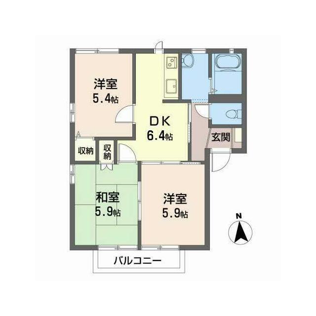 | 間取り | 3DK(DK6.4帖 洋室5.9帖 洋室5.4帖 和室5.9帖) | 主要採光面 | 南 |