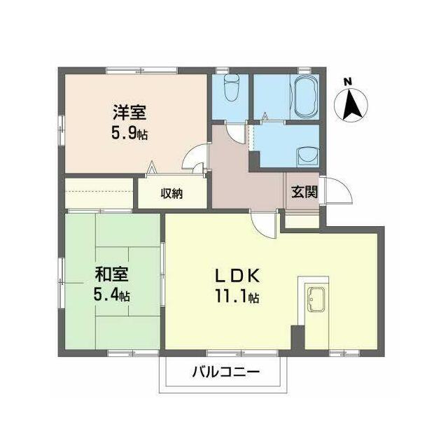 2LDK(LDK11.1帖 洋室5.9帖 和室5.4帖) |