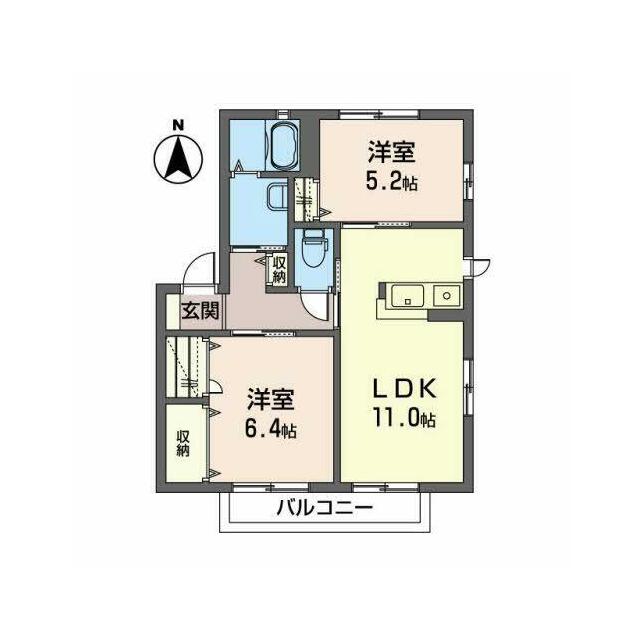 2LDK(LDK11.0帖 洋室6.4帖 洋室5.2帖) |