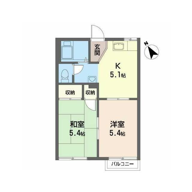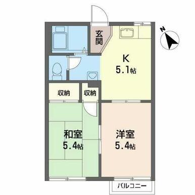 2K(K5.1帖 洋室5.4帖 和室5.4帖) |
