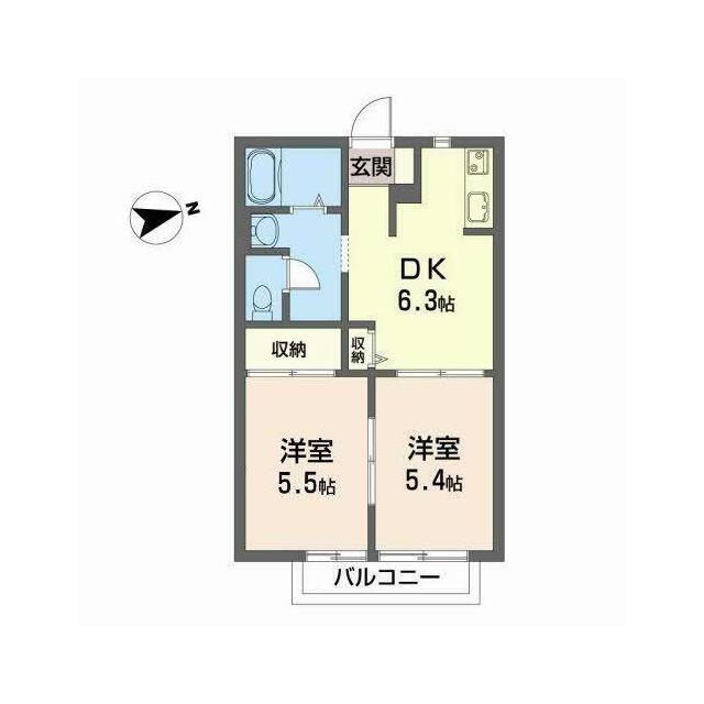 2DK(DK6.3帖 洋室5.4帖 洋室5.5帖) |